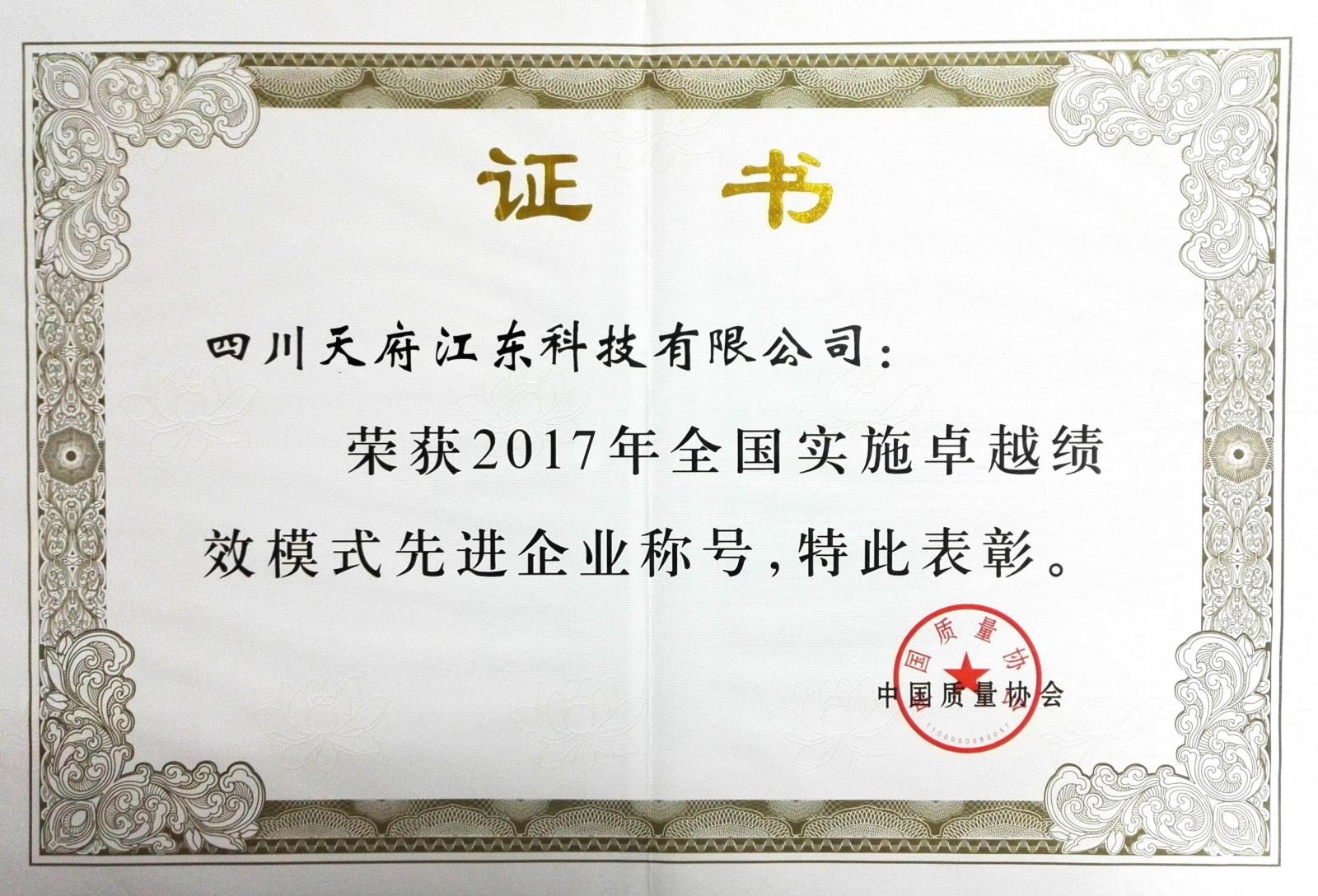 被評(píng)為實(shí)施全國卓越績(jī)效先進(jìn)企業(yè)